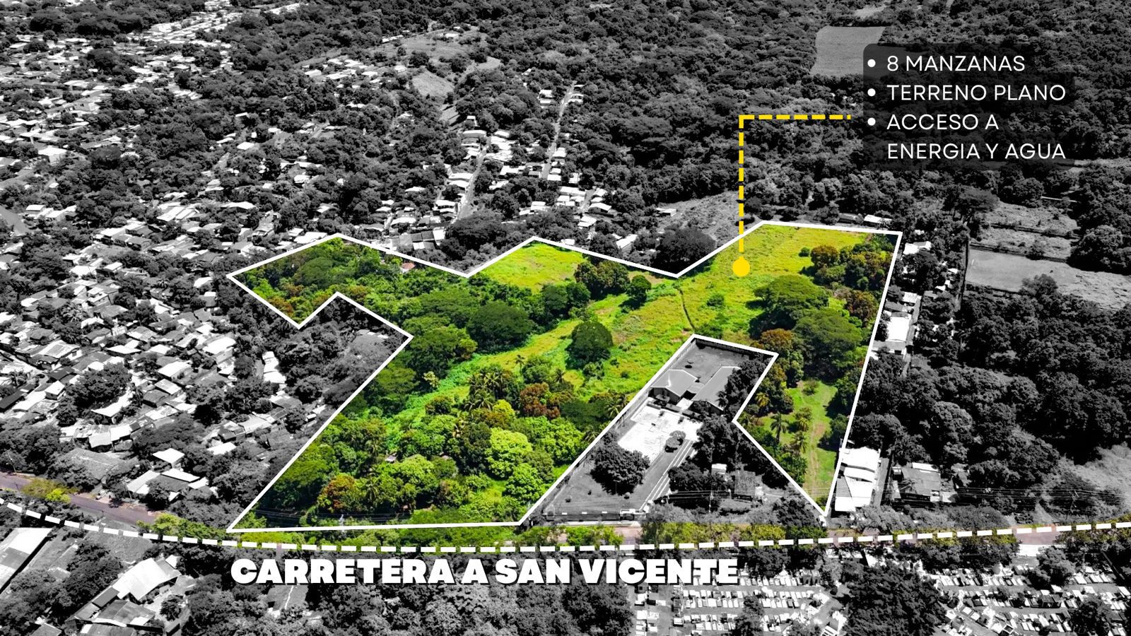 Venta de terreno en Zacatecoluca ubicado sobre la carretera a San Vicente, justo frente al cementerio central “El Espino”. Con 8 manzanas de extensión y topografía mayormente plana, este predio ofrece una base sólida para proyectos de escala, con excelente conectividad vehicular y peatonal hacia el casco urbano de Zacatecoluca y municipios vecinos. La ubicación segura y tranquila, sumada al acceso a agua y energía eléctrica, reduce tiempos de preparación y facilita el inicio de obra.